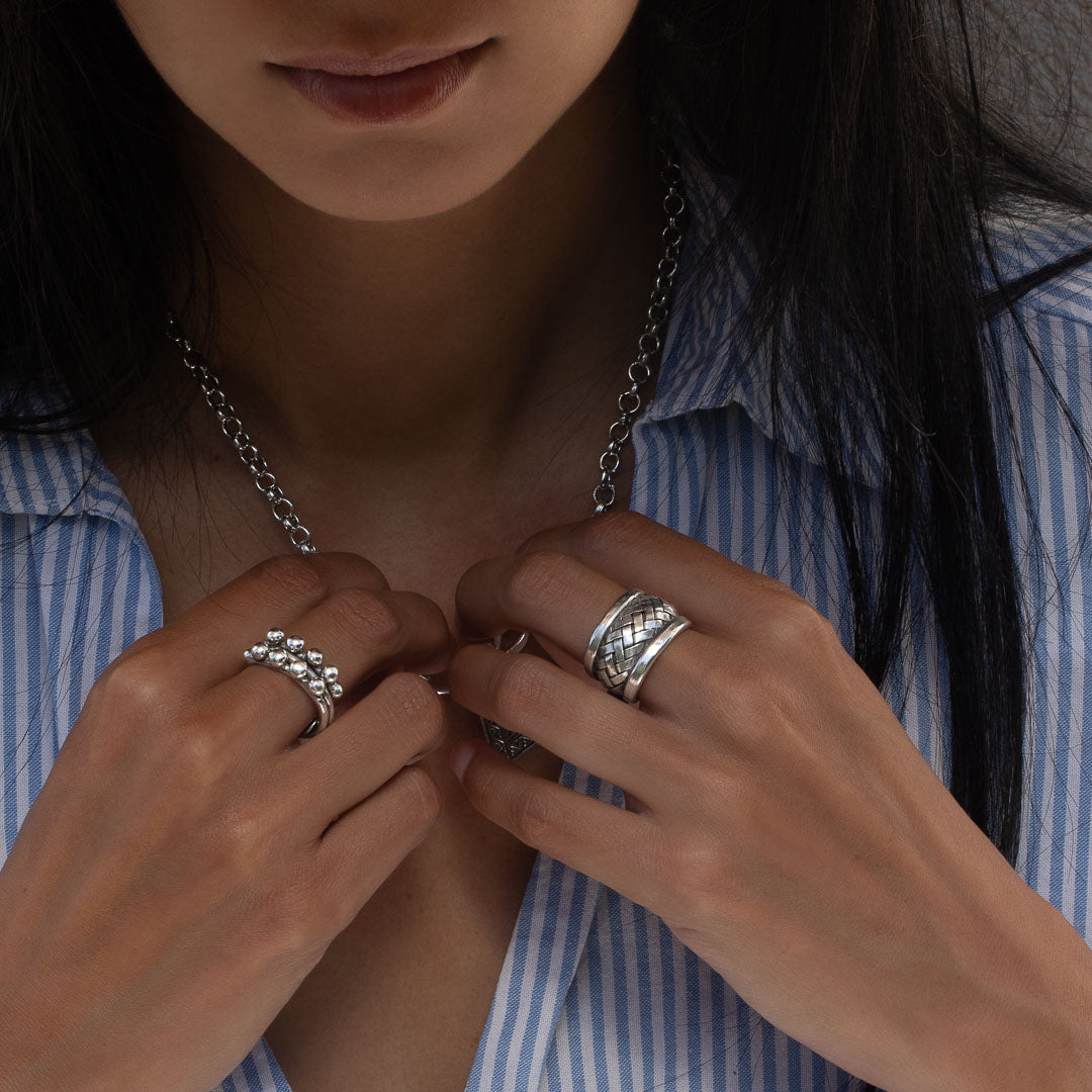 Gioielli patinati, effetto annerito. Questa finitura crea dettagli e volumi di evidenziazione del contrasto.